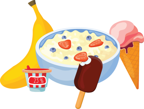 - Dairy – soft cheese, yogurt, pudding